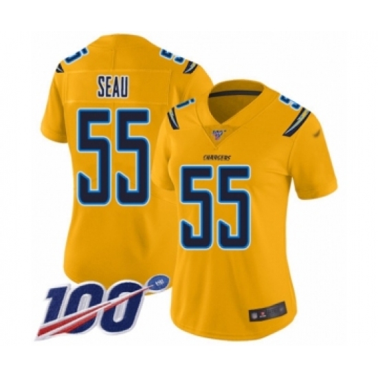Women's Los Angeles Chargers #55 Junior Seau Limited Gold Inverted Legend 100th Season Football Jersey