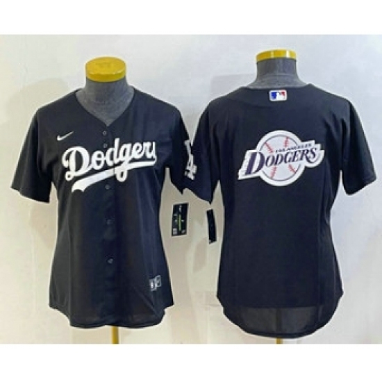 >Women's Los Angeles Dodgers Big Logo Black MLB Cool Base Nike Jersey