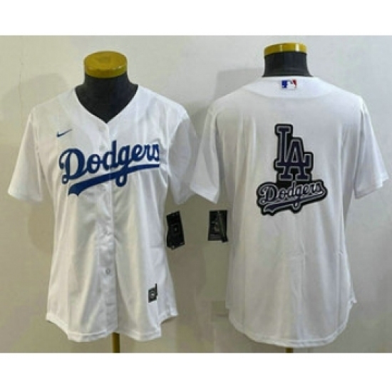 >Women's Los Angeles Dodgers Big Logo White MLB Cool Base Nike Jersey