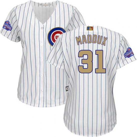 Women's Majestic Chicago Cubs #31 Greg Maddux Authentic White 2017 Gold Program MLB Jersey