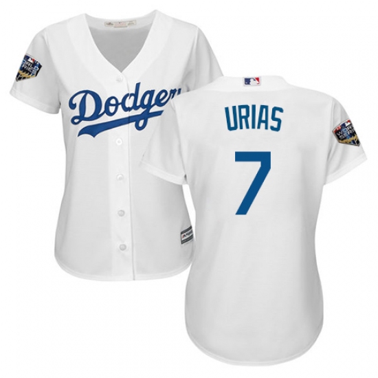 Women's Majestic Los Angeles Dodgers #7 Julio Urias Authentic White Home Cool Base 2018 World Series MLB Jersey