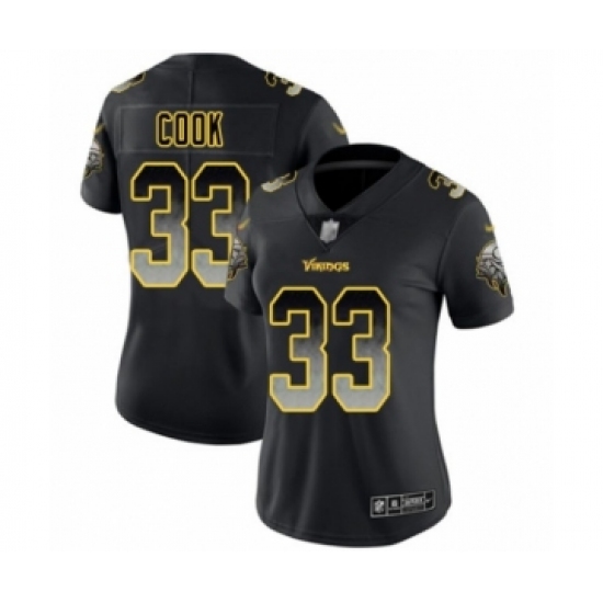 >Women's Minnesota Vikings #33 Dalvin Cook Limited Black Smoke Fashion Football Jersey