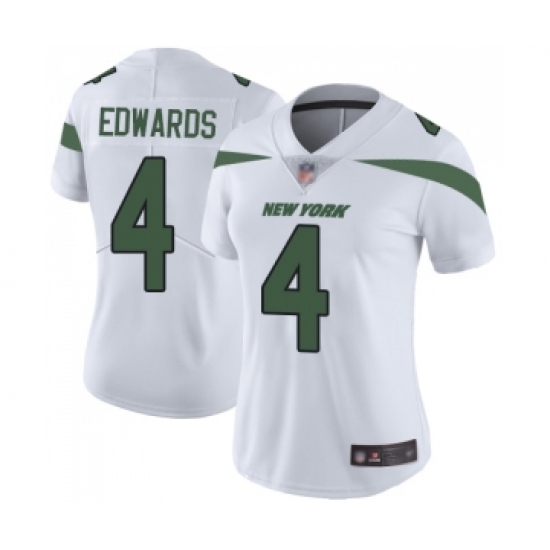 >Women's New York Jets #4 Lac Edwards White Vapor Untouchable Limited Player Football Jersey