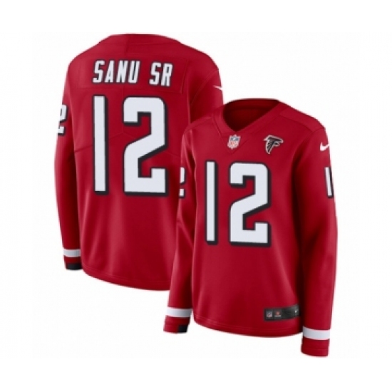 Women's Nike Atlanta Falcons #12 Mohamed Sanu Limited Red Therma Long Sleeve NFL Jersey