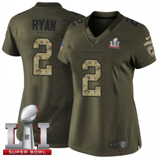 Home>NFL>Atlanta Falcons>Matt Ryan>Women's Nike Atlanta Falcons #2 Matt Ryan Limited Green Salute to Service Super Bowl LI 51 NFL Jersey