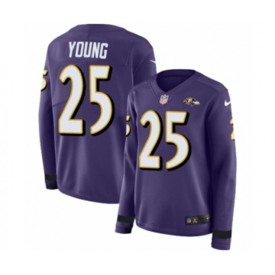 Women's Nike Baltimore Ravens #25 Tavon Young Limited Purple Therma Long Sleeve NFL Jersey