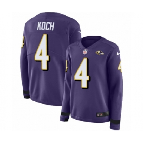>Women's Nike Baltimore Ravens #4 Sam Koch Limited Purple Therma Long Sleeve NFL Jersey