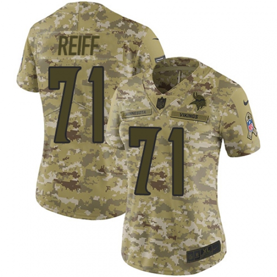 >Women's Nike Minnesota Vikings #71 Riley Reiff Limited Camo 2018 Salute to Service NFL Jersey