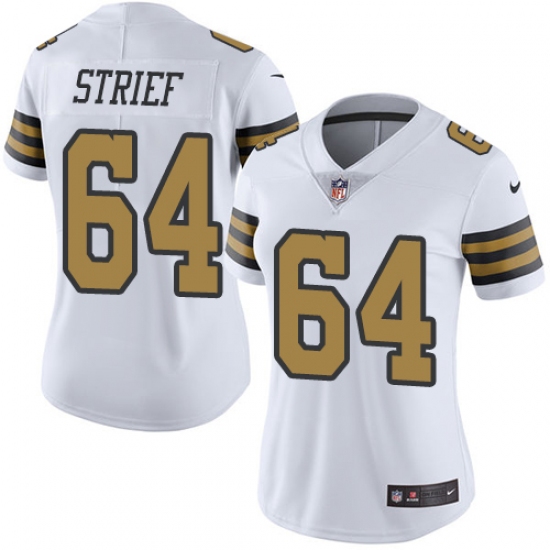 Home>NFL>New Orleans Saints>Zach Strief>Women's Nike New Orleans Saints #64 Zach Strief Limited White Rush Vapor Untouchable NFL Jersey