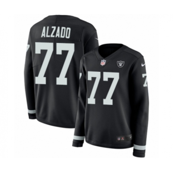 Women's Nike Oakland Raiders #77 Lyle Alzado Limited Black Therma Long Sleeve NFL Jersey