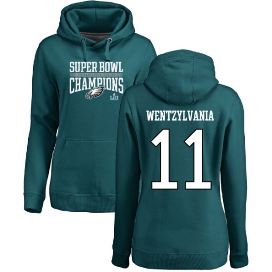 >Women's Nike Philadelphia Eagles #11 Carson Wentz Green Wentzylvania Super Bowl LII Champions Pullover Hoodie