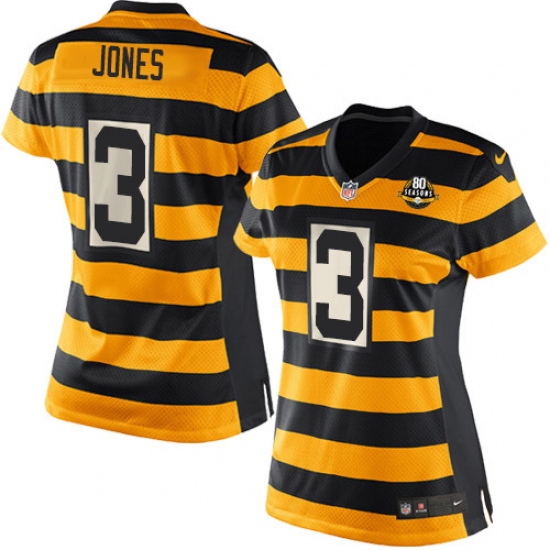 Women's Nike Pittsburgh Steelers #3 Landry Jones Game Yellow/Black Alternate 80TH Anniversary Throwback NFL Jersey