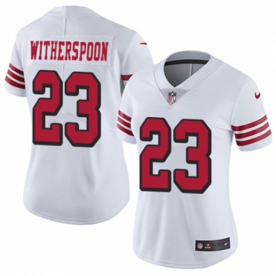>Women's Nike San Francisco 49ers #23 Ahkello Witherspoon Limited White Rush Vapor Untouchable NFL Jersey