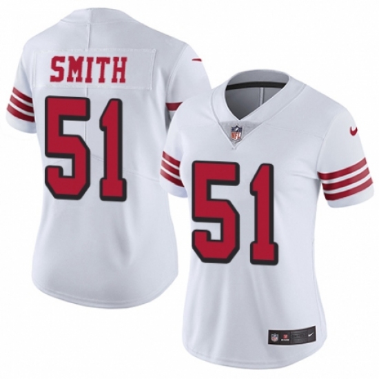 >Women's Nike San Francisco 49ers #51 Malcolm Smith Limited White Rush Vapor Untouchable NFL Jersey