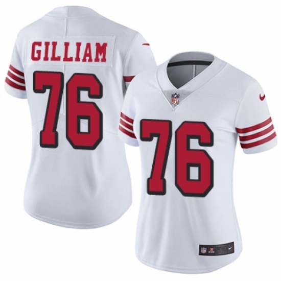 >Women's Nike San Francisco 49ers #76 Garry Gilliam Limited White Rush Vapor Untouchable NFL Jersey