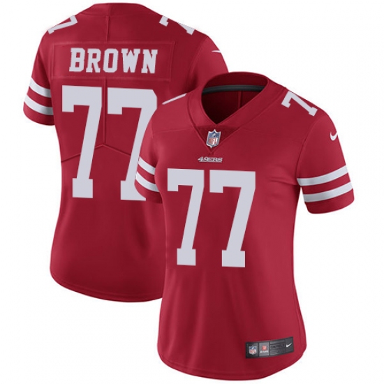 Women's Nike San Francisco 49ers #77 Trent Brown Red Team Color Vapor Untouchable Limited Player NFL Jersey