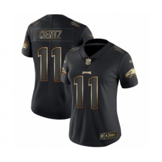 Women's Philadelphia Eagles #11 Carson Wentz Black Gold Vapor Untouchable Limited Player Football Jersey