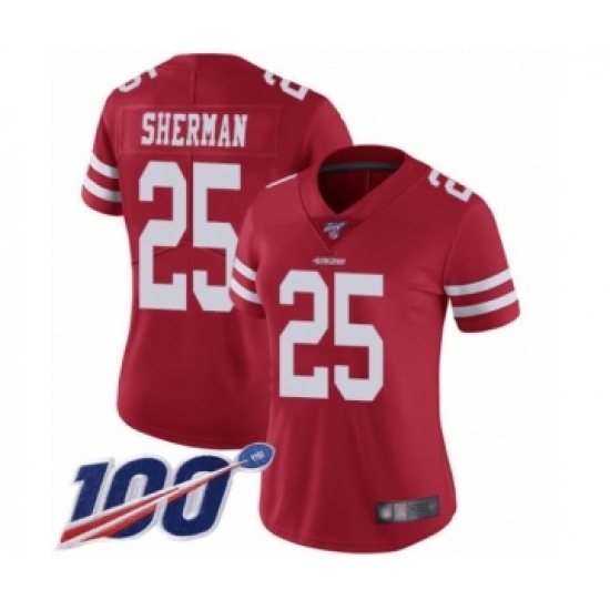 >Women's San Francisco 49ers #25 Richard Sherman Red Team Color Vapor Untouchable Limited Player 100th Season Football Jersey
