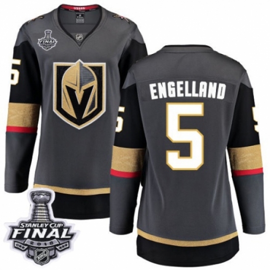 >Women's Vegas Golden Knights #5 Deryk Engelland Authentic Black Home Fanatics Branded Breakaway 2018 Stanley Cup Final NHL Jersey