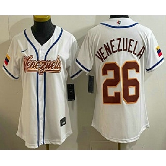 >Women's Venezuela #26 Venezuela White 2026 World Baseball Classic Cool Base Jersey