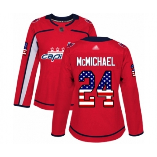 Women's Washington Capitals #24 Connor McMichael Authentic Red USA Flag Fashion Hockey Jersey