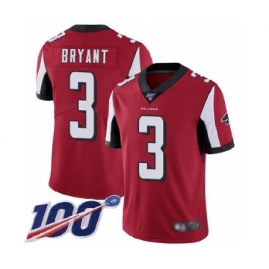 Youth Atlanta Falcons #3 Matt Bryant Red Team Color Vapor Untouchable Limited Player 100th Season Football Jersey