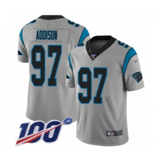 Youth Carolina Panthers #97 Mario Addison Silver Inverted Legend Limited 100th Season Football Jersey