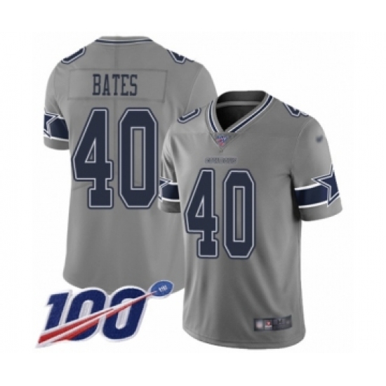 >Youth Dallas Cowboys #40 Bill Bates Limited Gray Inverted Legend 100th Season Football Jers