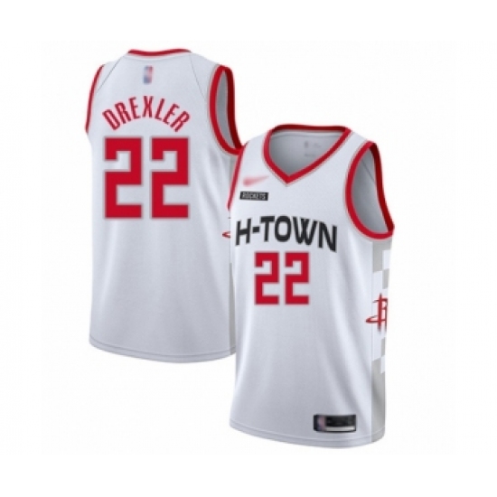 >Youth Houston Rockets #22 Clyde Drexler Swingman White Basketball Jersey - 2019 20 City Edition