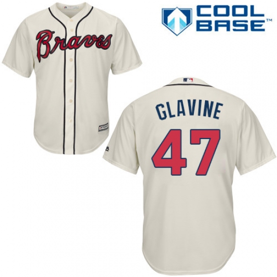 Youth Majestic Atlanta Braves #47 Tom Glavine Authentic Cream Alternate 2 Cool Base MLB Jersey