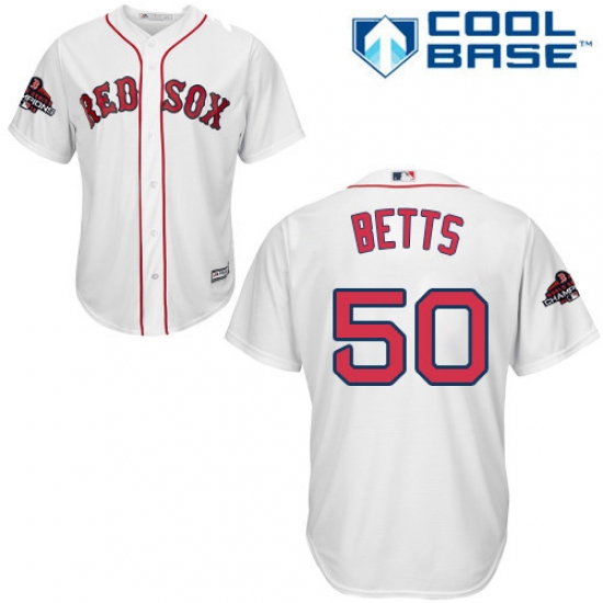 Youth Majestic Boston Red Sox #50 Mookie Betts Authentic White Home Cool Base 2018 World Series Champions MLB Jersey