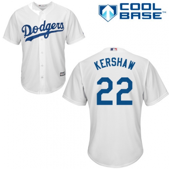 Youth Majestic Los Angeles Dodgers #22 Clayton Kershaw Replica White Home Cool Base MLB Jersey