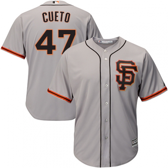 Home>MLB>San Francisco Giants>Johnny Cueto>Youth Majestic San Francisco Giants #47 Johnny Cueto Authentic Grey Road 2 Cool Base MLB Jersey