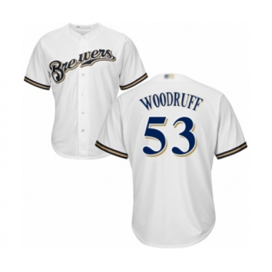 Men's Milwaukee Brewers #53 Brandon Woodruff White Home Flex Base Authentic Collection Baseball Jersey