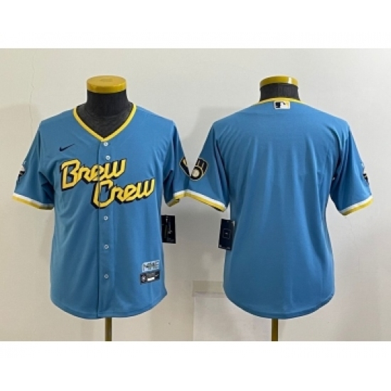 Youth Milwaukee Brewers Blank Blue 2022 City Connect Cool Base Stitched Jersey