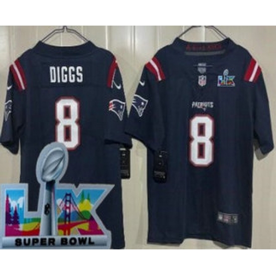 >Youth New England Patriots #8 Stefon Diggs Limited Navy Super Bowl LX Vapor Jersey
