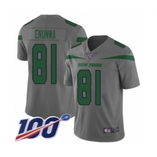 >Youth New York Jets #81 Quincy Enunwa Limited Gray Inverted Legend 100th Season Football Jersey