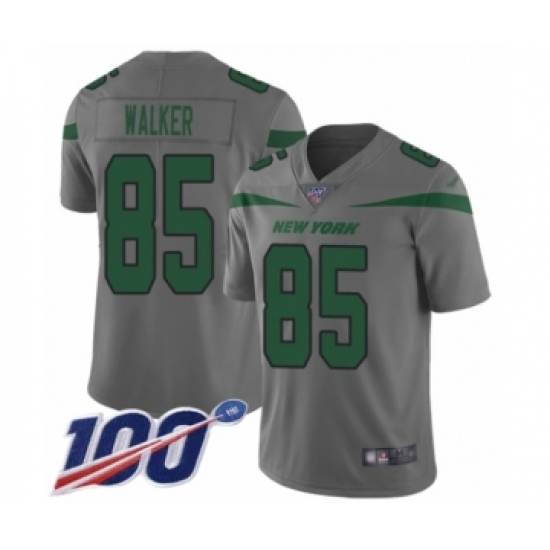 >Youth New York Jets #85 Wesley Walker Limited Gray Inverted Legend 100th Season Football Jersey