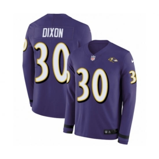 >Youth Nike Baltimore Ravens #30 Kenneth Dixon Limited Purple Therma Long Sleeve NFL Jersey