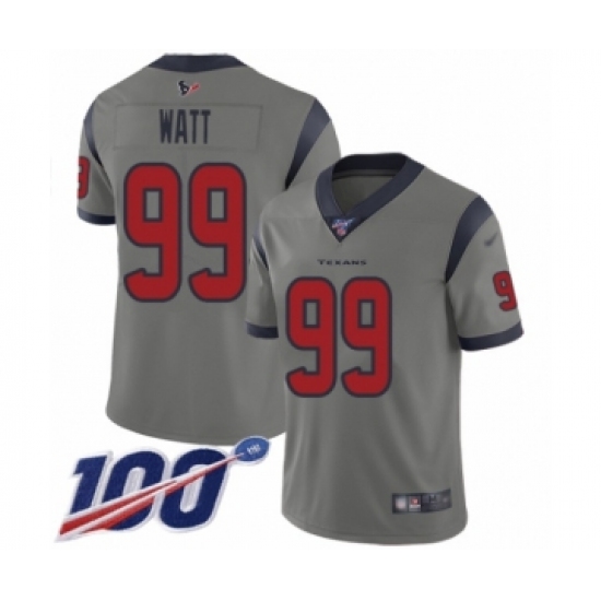 >Youth Nike Houston Texans #99 J.J. Watt Limited Gray Inverted Legend 100th Season NFL Jersey