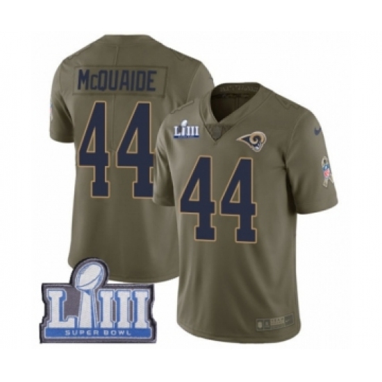 Youth Nike Los Angeles Rams #44 Jacob McQuaide Limited Olive 2017 Salute to Service Super Bowl LIII Bound NFL Jersey