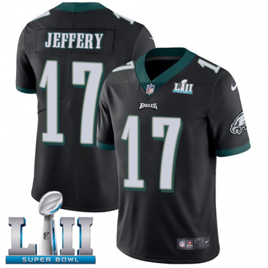Home>NFL>Philadelphia Eagles>Alshon Jeffery>Youth Nike Philadelphia Eagles #17 Alshon Jeffery Black Alternate Vapor Untouchable Limited Player Super Bowl LII NFL Jersey