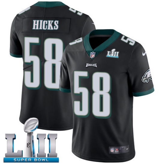 Home>NFL>Philadelphia Eagles>Jordan Hicks>Youth Nike Philadelphia Eagles #58 Jordan Hicks Black Alternate Vapor Untouchable Limited Player Super Bowl LII NFL Jersey