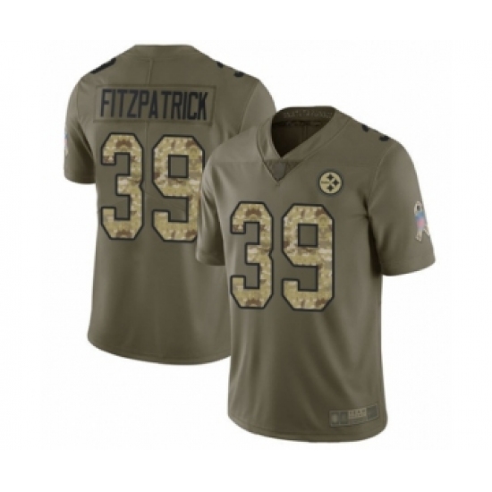 >Youth Pittsburgh Steelers #39 Minkah Fitzpatrick Limited Olive Camo 2017 Salute to Service Football Jersey