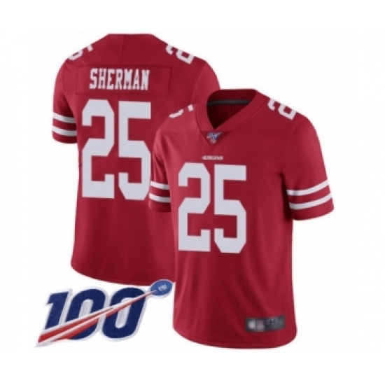 Youth San Francisco 49ers #25 Richard Sherman Red Team Color Vapor Untouchable Limited Player 100th Season Football Jersey