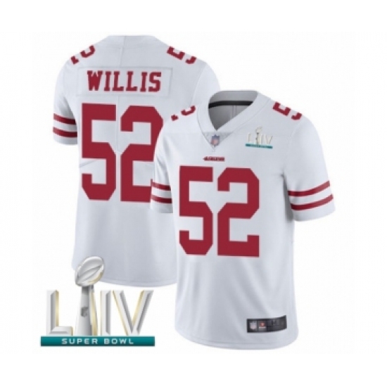 Men's San Francisco 49ers #52 Patrick Willis Limited White Rush Vapor Untouchable Super Bowl LIV Bound Football Jersey