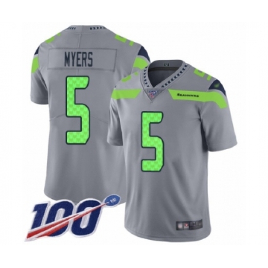 >Youth Seattle Seahawks #5 Jason Myers Limited Silver Inverted Legend 100th Season Football Jersey