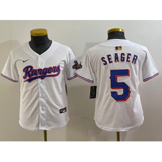 Youth Texas Rangers #5 Corey Seager White 2024 Gold Collection Limited Cool Base Jersey