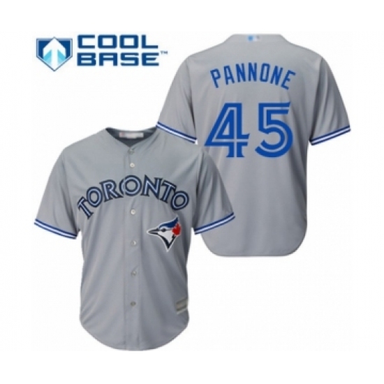 Men's Toronto Blue Jays #45 Thomas Pannone Grey Road Flex Base Authentic Collection Baseball Player Jersey